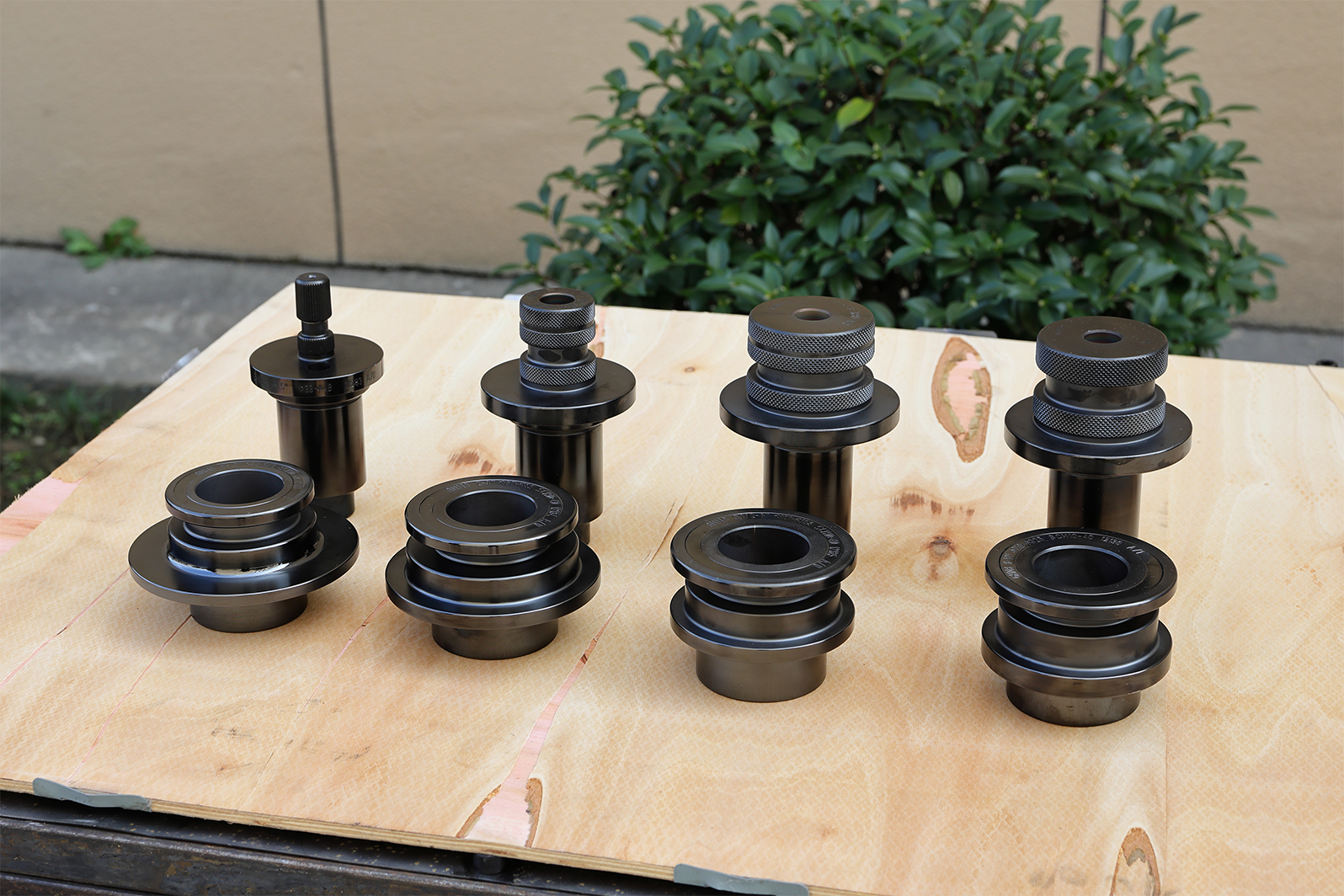 (Full view of the new TiAlN-coated roll sets for Gruvmaster roll grooving machines.)