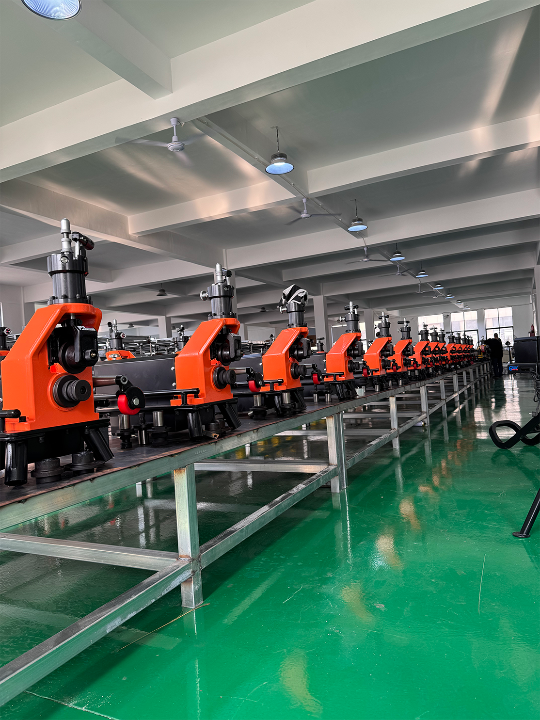 Rows of Gruvmaster roll groovers are completing final assembly and inspection in our workshop, preparing for shipment to overseas customers. The large-scale production scene reflects our steady output capacity and the growing demand from global markets.
