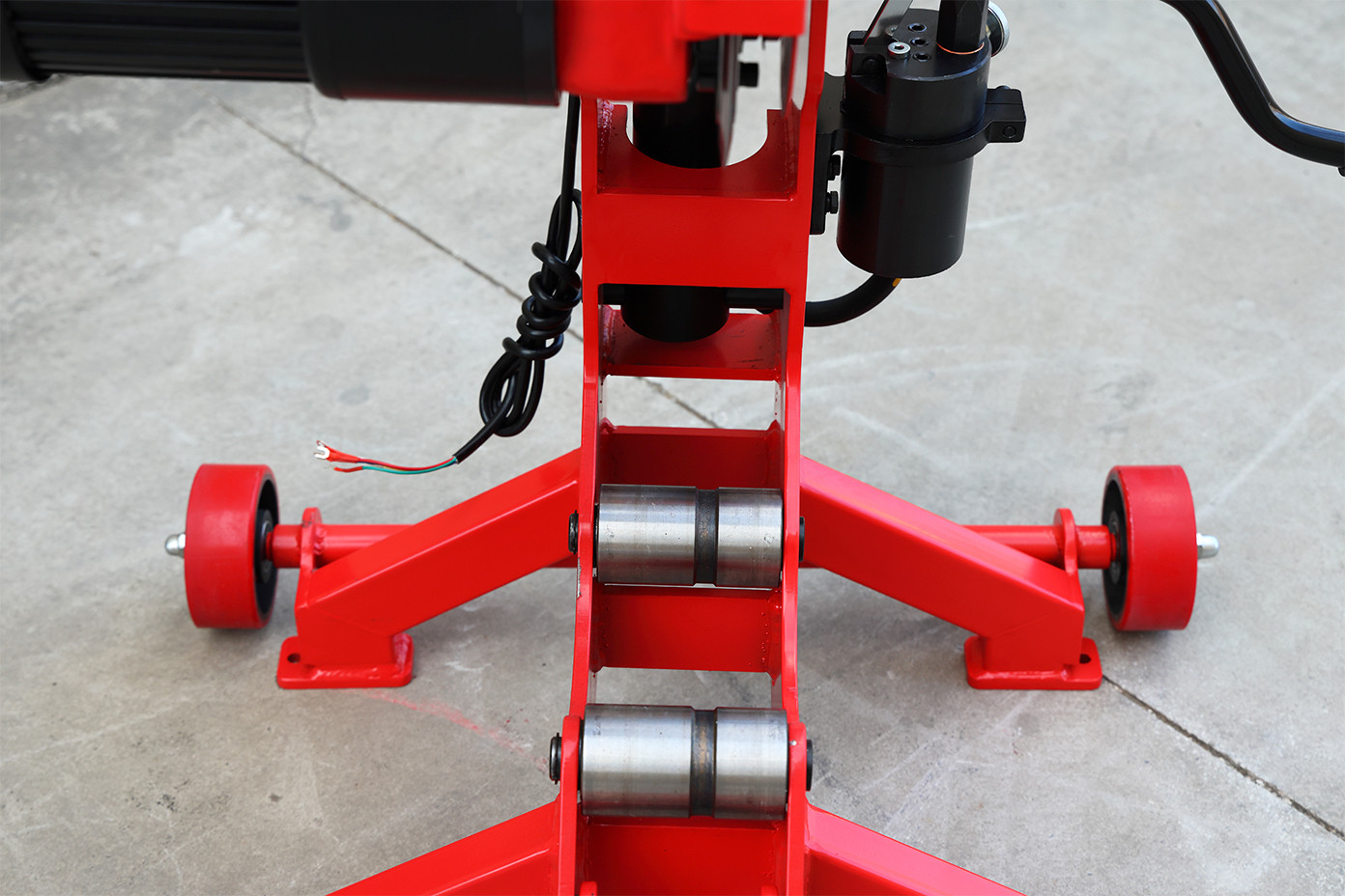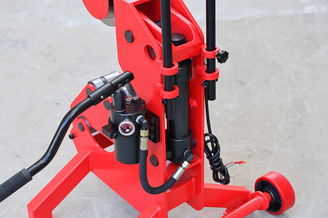 While keeping the original cutting and hydraulic structure unchanged, a tow handle and wheels were added, allowing the machine to be repositioned by pulling rather than lifting.