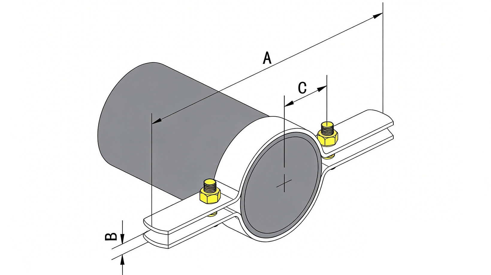 The clamp can be installed below a coupling or hub using bolted connections, ensuring stable pipe positioning and long-term durability.